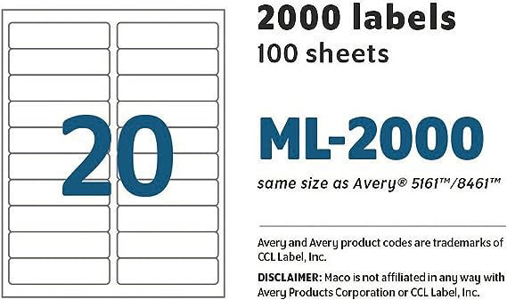 46-003 Maco 1/2x1-3/4 Laser/Inkjet Labels (2000) #ML-8025