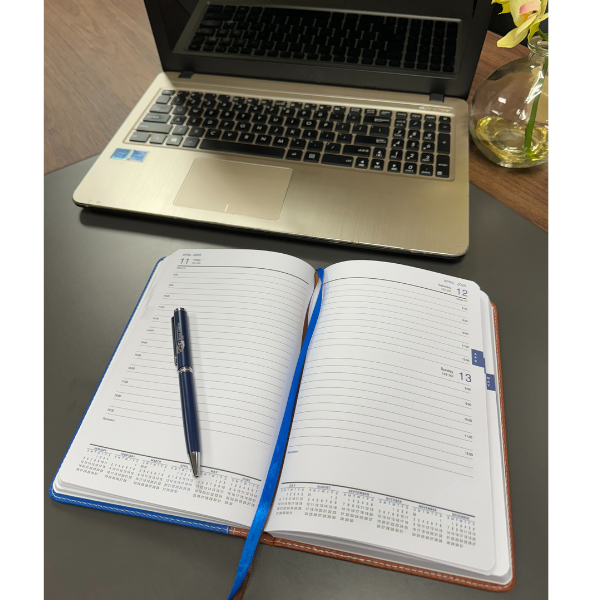 90-004 SOS 5-1/2x8-1/2 Exec. Appt. Diary (Blue/Tan) 1-DAY