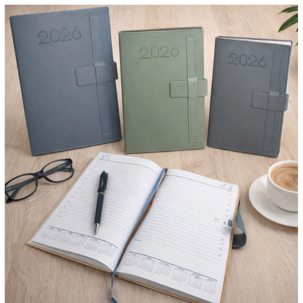Diary is dated, with one day per page. Features a full day of notetaking space.