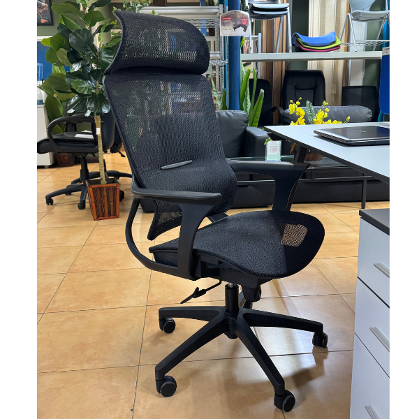 This mesh executive office chair provides all-day comfort and support by the use of a high-density full mesh back, fixed headrest and seat. The breathable mesh provides cool and comfortable support, enabling long hours of sitting without sweating.