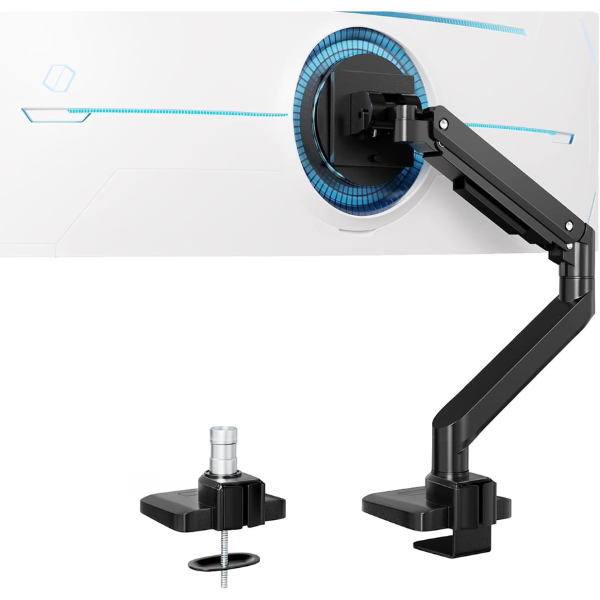To keep up with the new trend of larger screens, this heavy duty monitor arm was designed with optimized tilting mechanism to securely hold monitors up to 49 inches, which can provide a smoother adjusting experience for large screens.