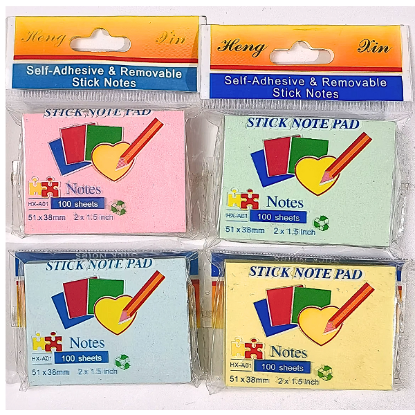 1.5 x 2 inches, 24 Pads per Pack, 100 Sheets per Pad, pastel colours.
