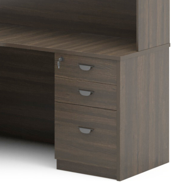 Spread out and maximize your work efforts with the Elite Exec. Desk Unit with Hutch and Pedestal.
