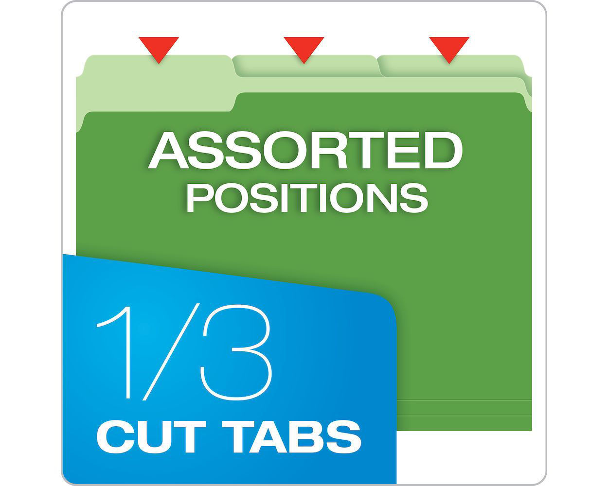 Pendaflex Two-Tone Color File Folders come in brilliant shades with lighter interiors to prevent time-wasting misfiles. Create bright, color-coded files for fast, efficient filing. 1/3-Cut tabs. Letter size, green.
